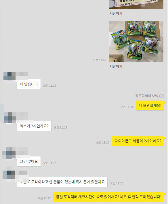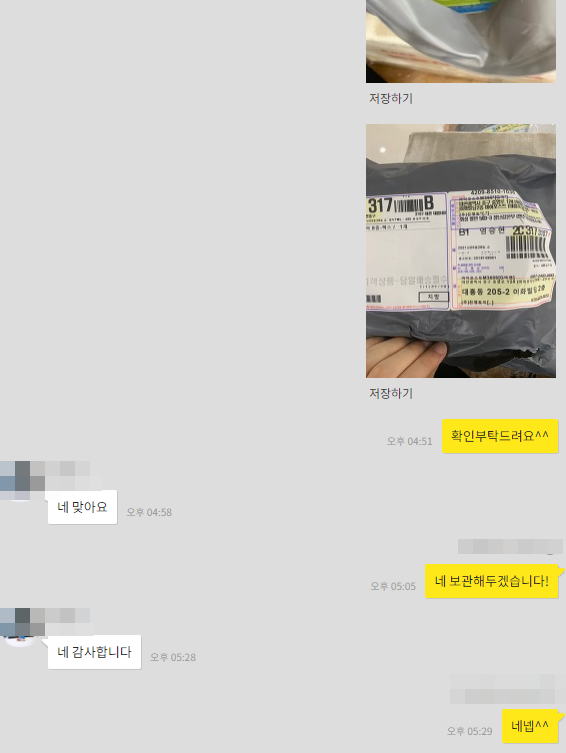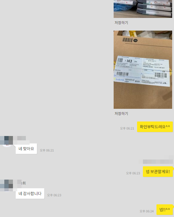이렇게 물건이 도착할때마다 사진을 찍어 정확히 확인해드립니다.