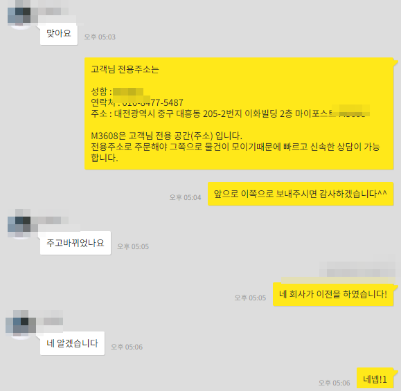 모든 절차는 매우 간편하게 카톡으로 다 진행되어져요.
